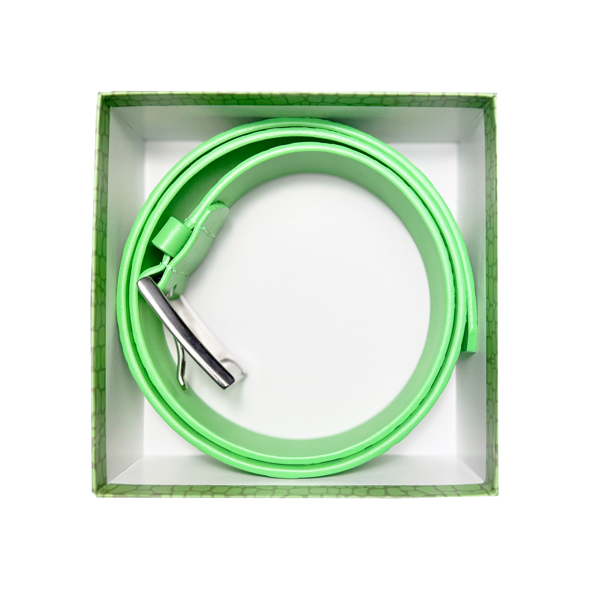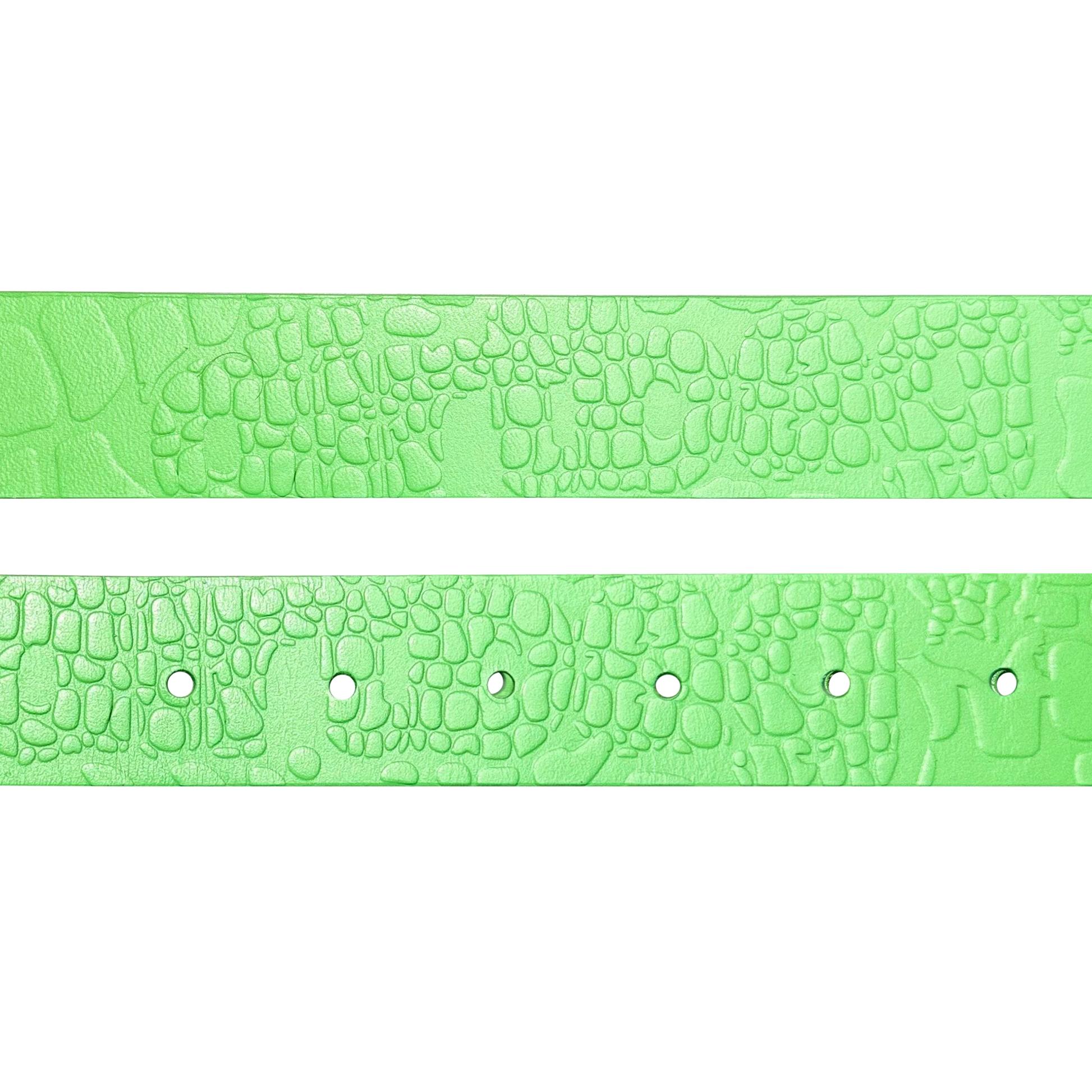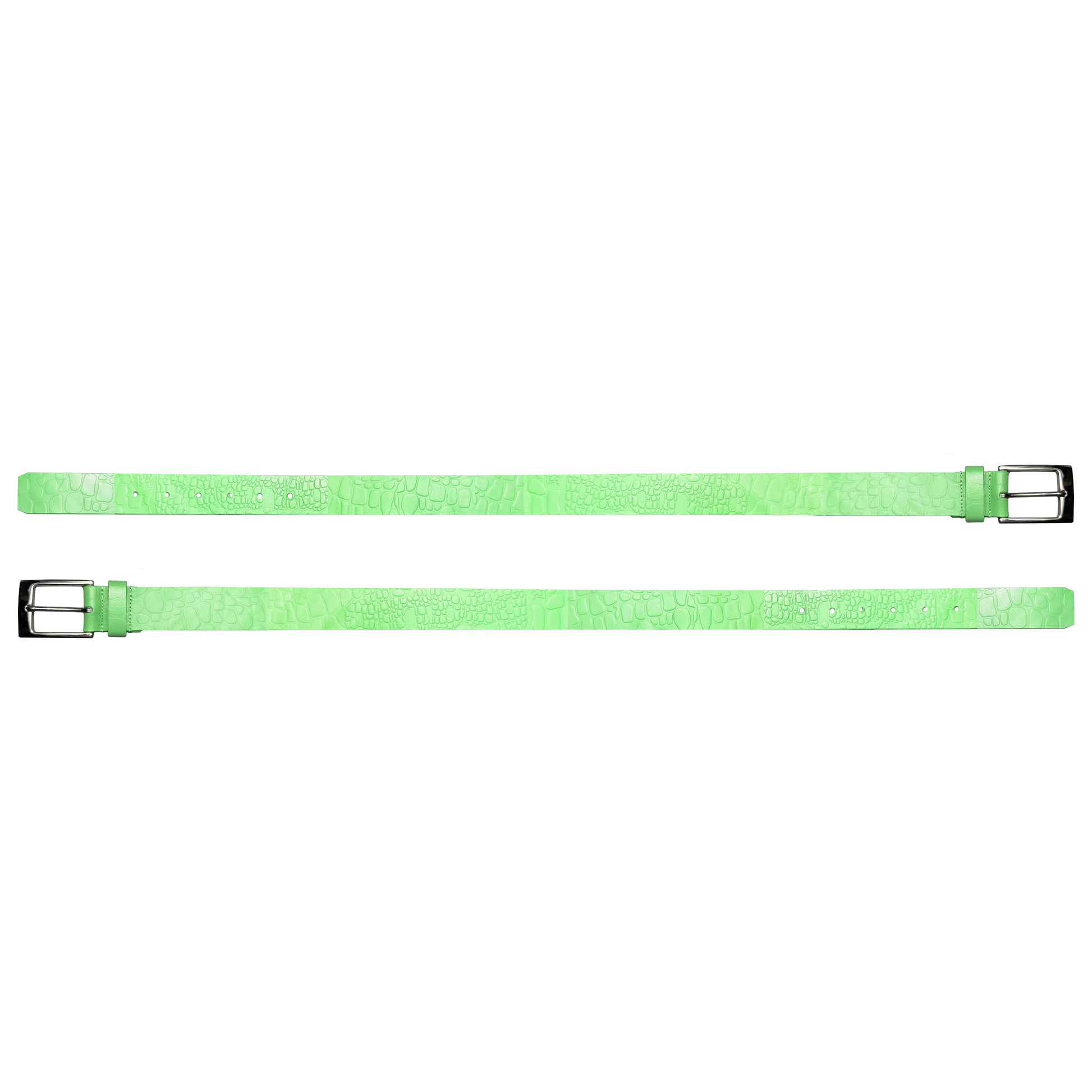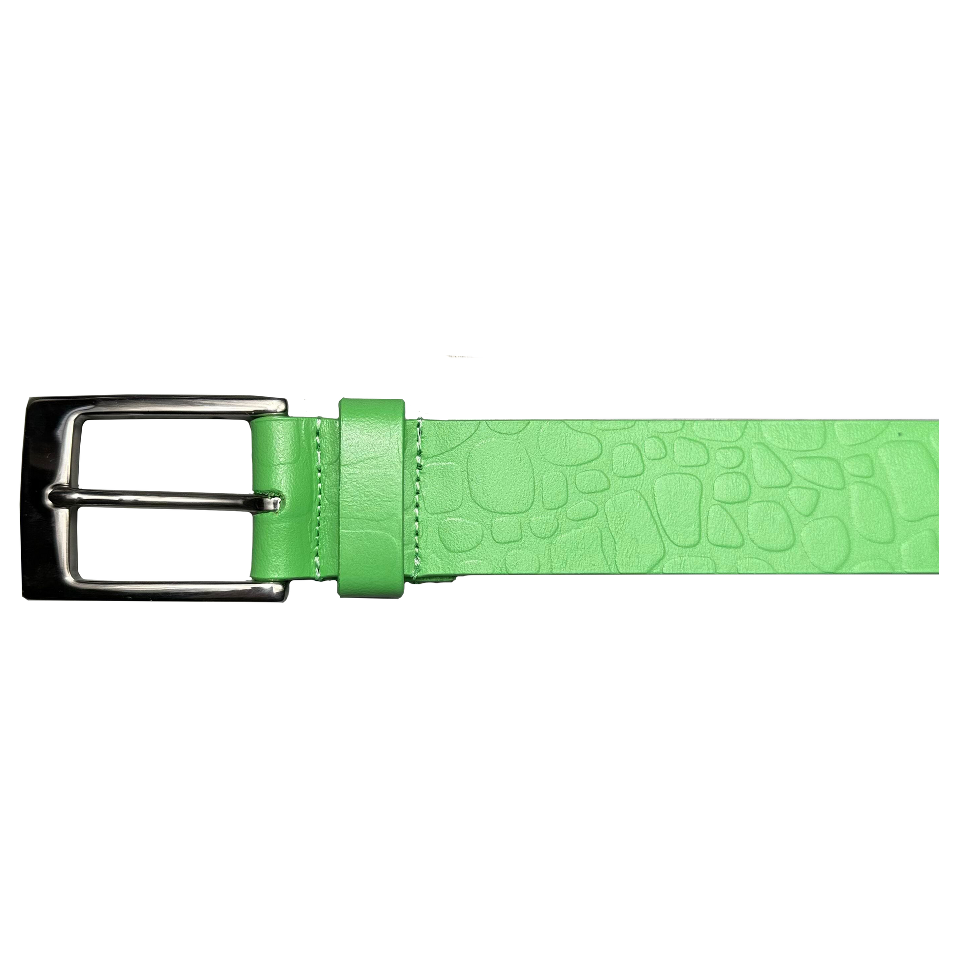 THE DUNDEE BELT IS AN EMBOSSED LEATHER BELT WITH A CUSTOM CROCODILE PATTERN. THE BELT FEATURES A BEAUTIFUL BRIGHT GREEN TO ALLOW FOR THE BELT TO POP! THE BELT FEATURES A SILVER STAINLESS STEEL BUCKLE & COMES IN A STANDARD SIZE LARGE... EXTRA HOLES CAN BE POKED FOR A SMALLER WAIST.